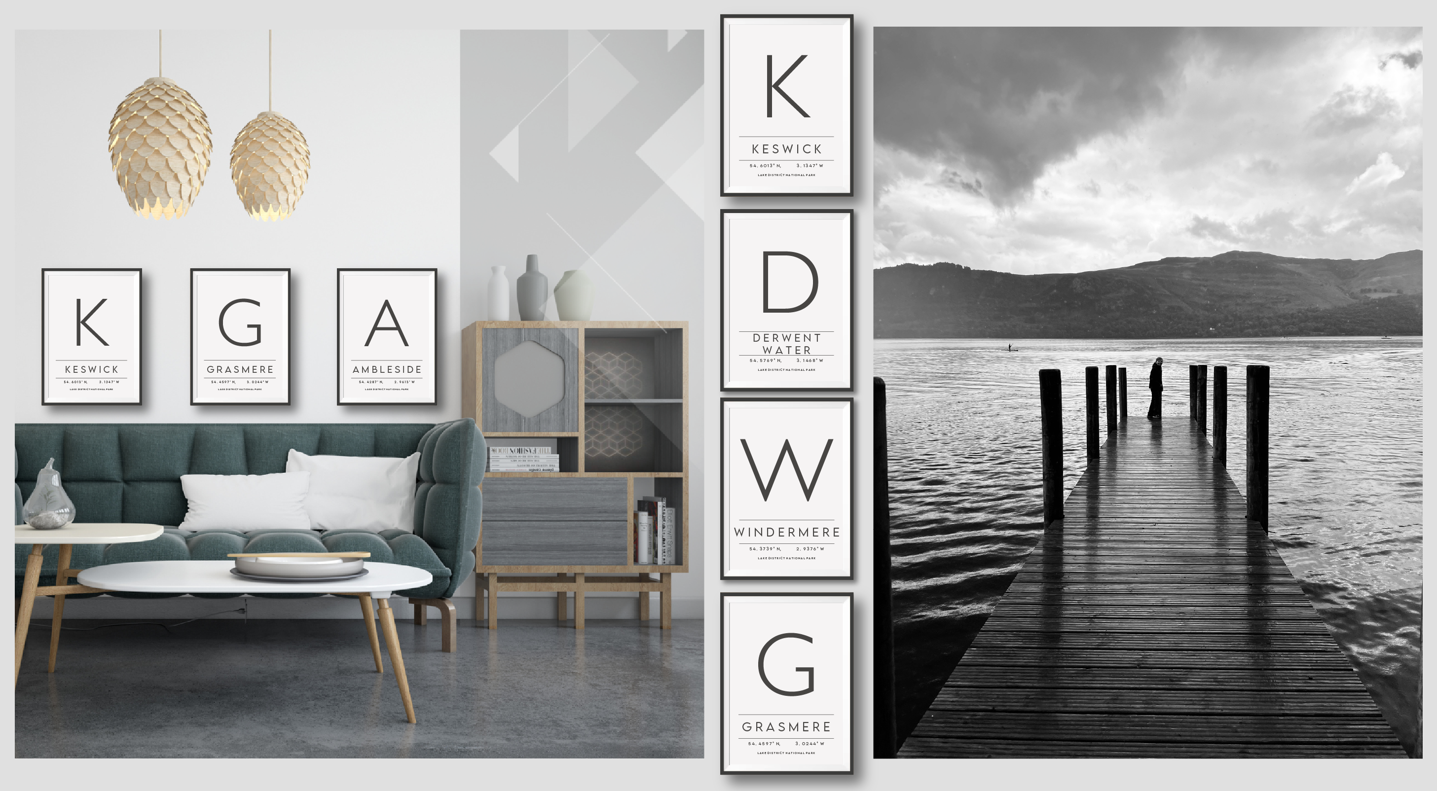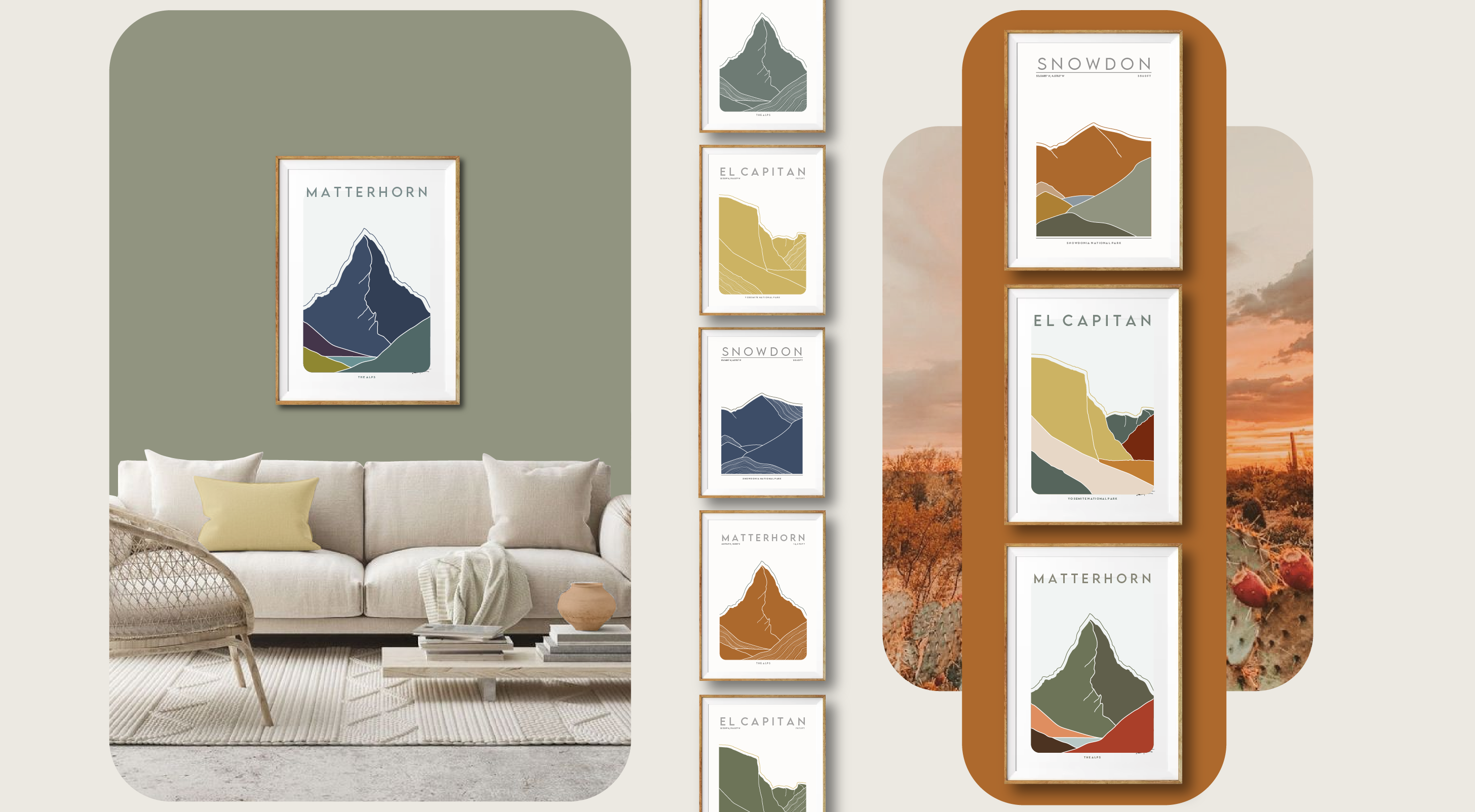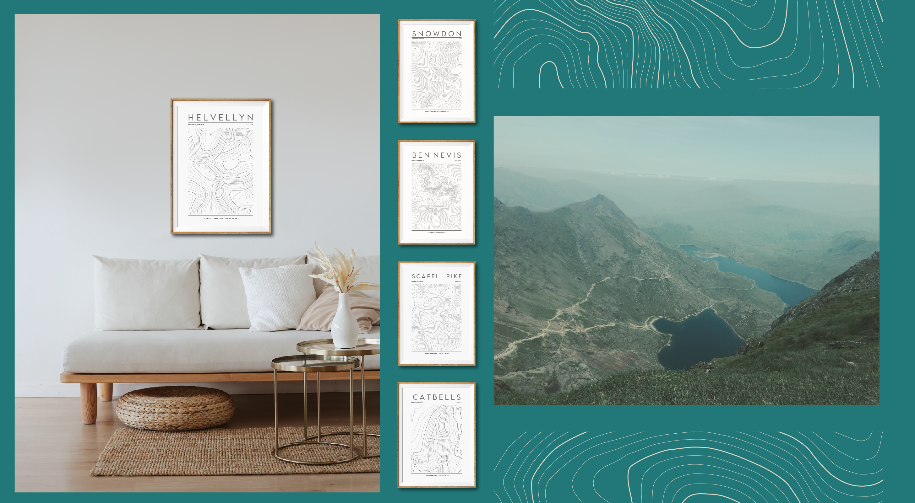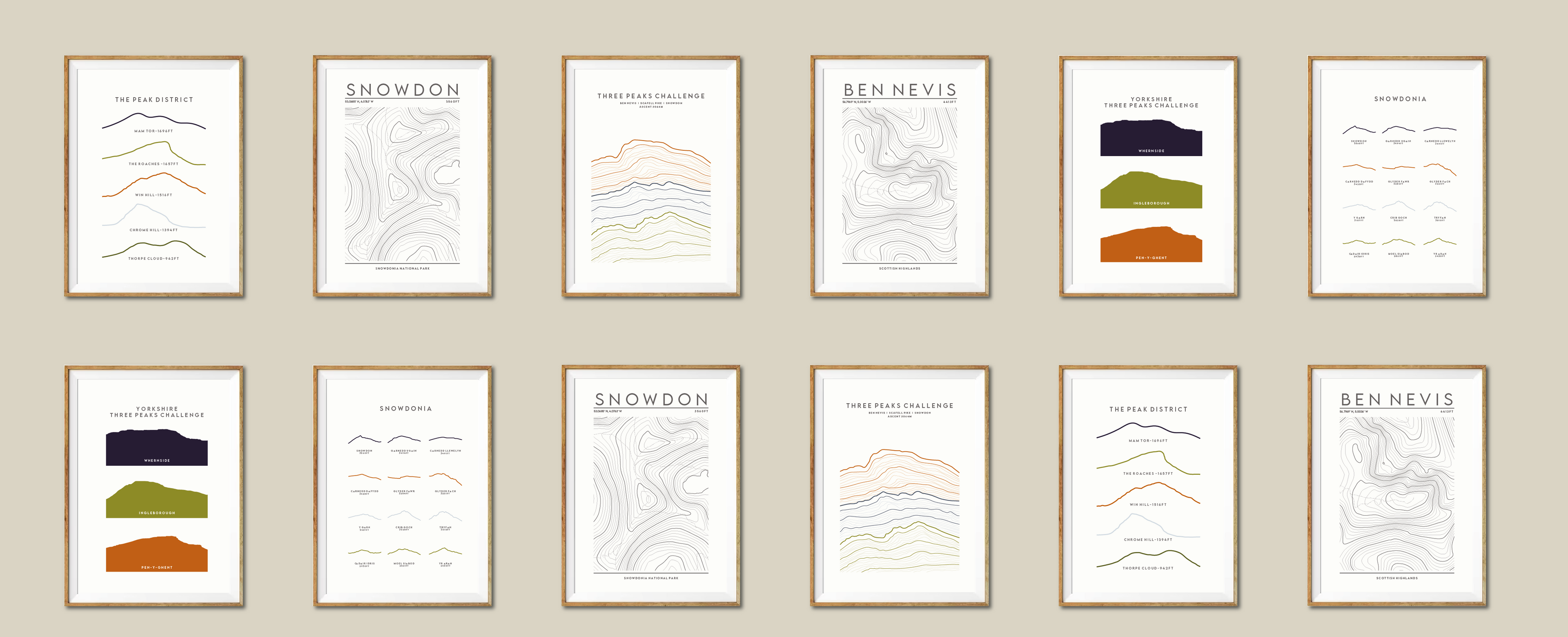 A collection of minimalistic prints highlighting the summits of Mountains, fell and...