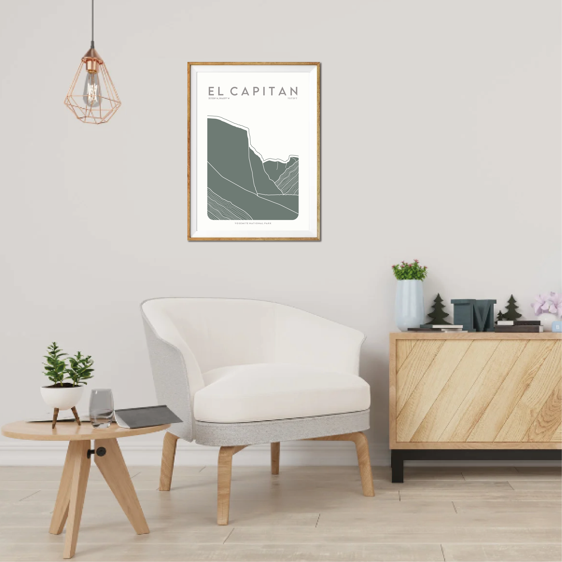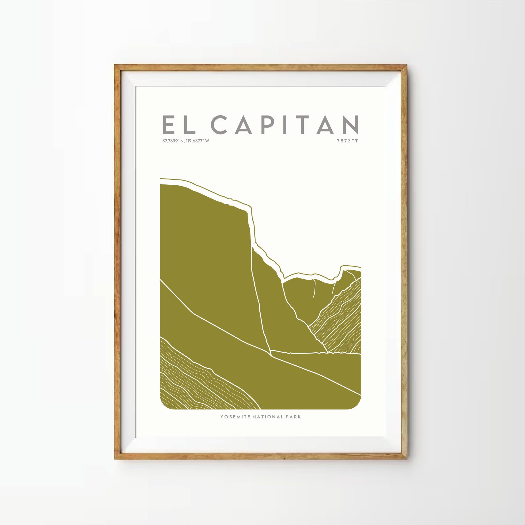 This Modern and Minimalist print of El Capitan in the stunning Yosemite National Park, highlights the silhouette with contour line detailing.